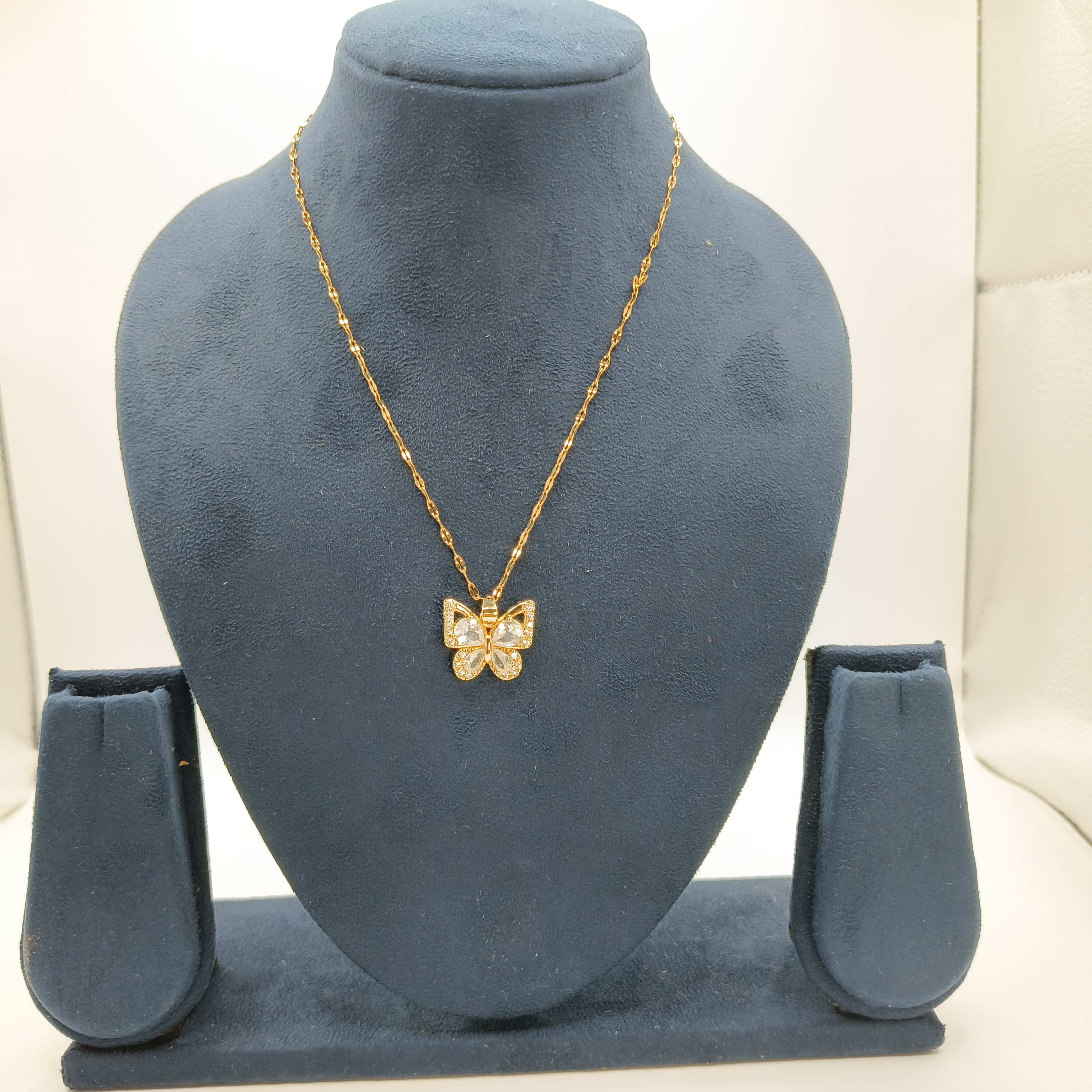 Electroplating 18K Gold Golden Plated Butterfly Titanium Steel Handmade Earrings Necklace