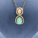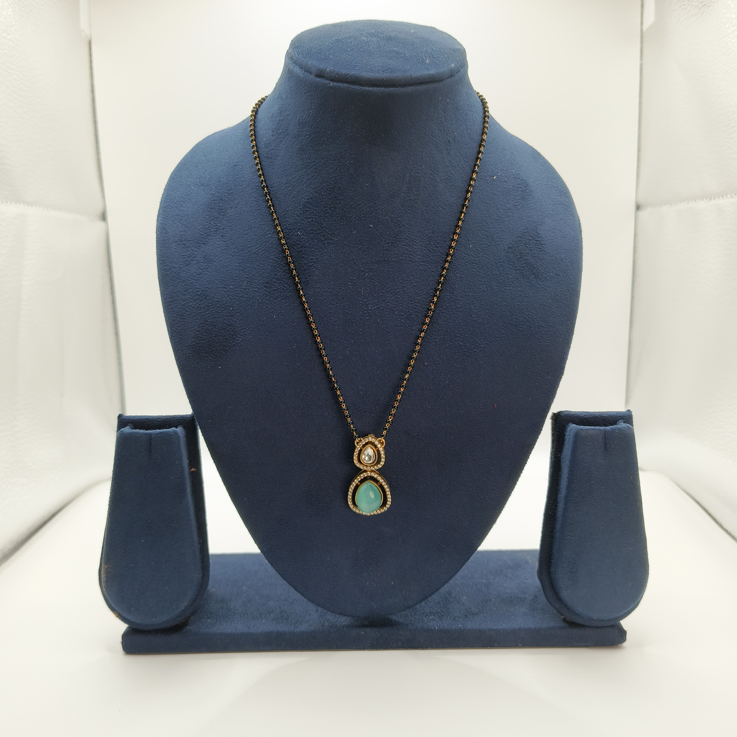 Elegant Gold-Plated Mangalsutra with Aqua Blue & White CZ Stones