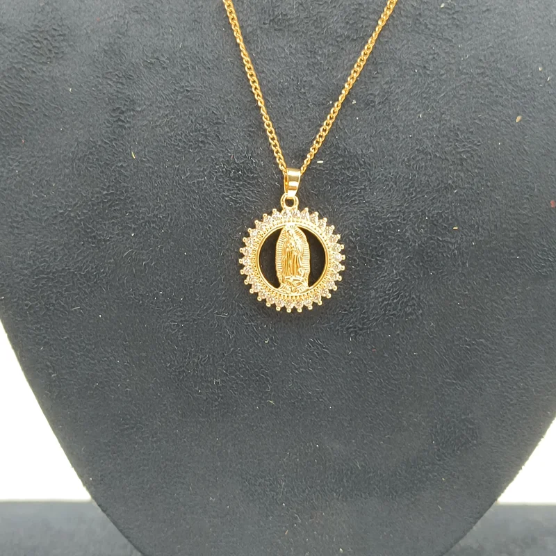 Vintage Style Simple Style Virgin Mary Copper Plating Inlay Zircon 14k Gold Plated Pendant Necklace
